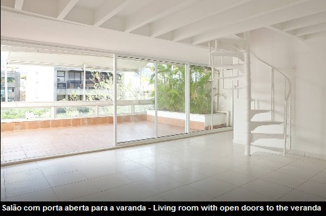 Descrição: Cobertura duplex, com 3 quartos (1 suite), duas salas, 3 terraços, dependência completa, equipado com ar condicionado (split), persianas, fogão/forno/geladeira, máquina de lavar e jardineira.